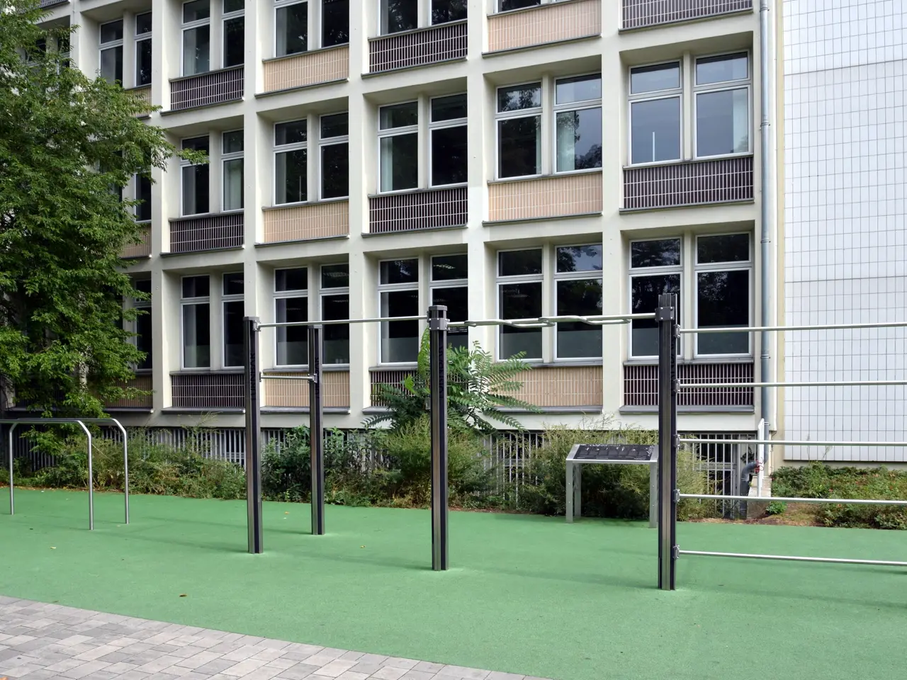 At Kopernikus-Gymnasium, a concrete roller-sports court with spectator stands was added to the previously completed upgrades.